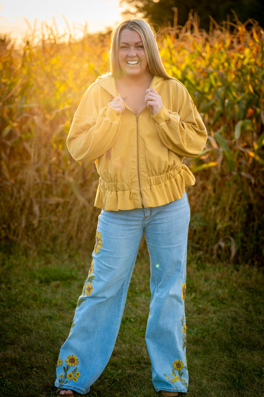 Oli & Hali Washed Zip-Up Hooded Oversized Jacket – Mustard