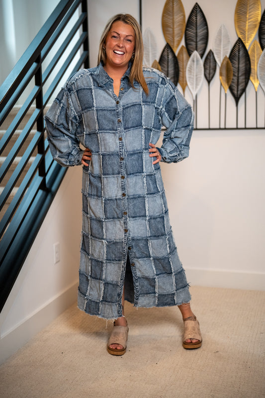 Oli & Hali Washed Square Patchwork Tencel Long Shirt