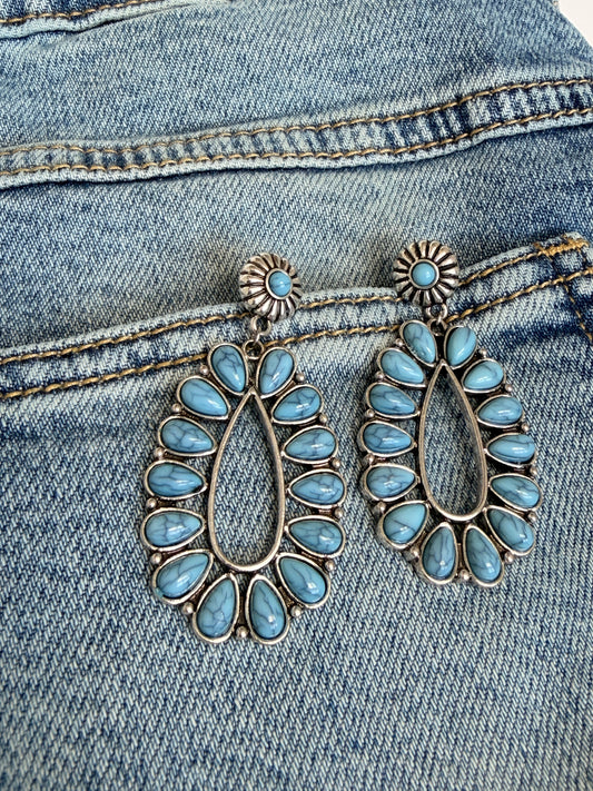 Natural Stone Oval Drop Earrings – Cowgirl Chrome Glam