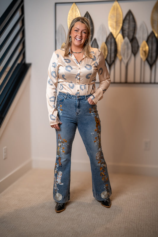 Lucky Charm Horseshoe Satin Bodysuit – Blue B