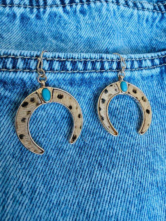 Cowhide Bullhorn Western Earrings