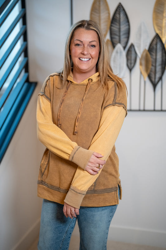 Oli & Hali Washed Zip-Up Hooded Oversized Jacket – Mustard