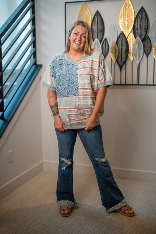 Oli & Hali American Flag Pullover Knit Top