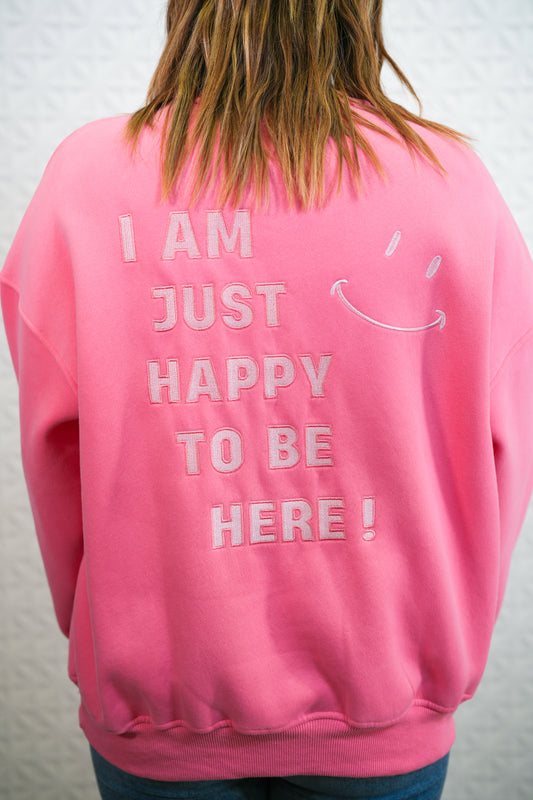 I Am Just Happy To Be Here - Hibiscus Pink Crewneck