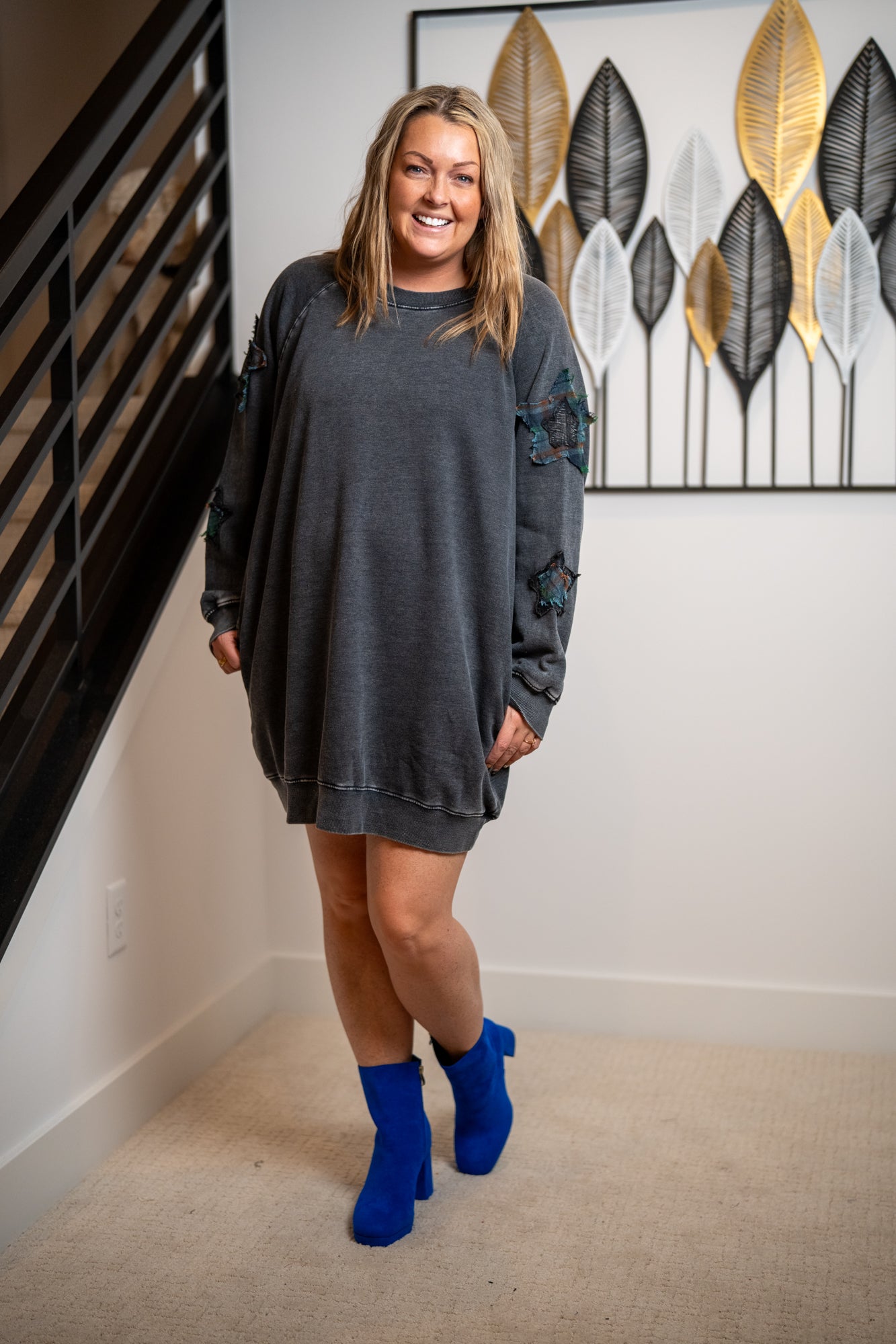 Effortlessly cool and comfortably casual, the Star Patch Mineral Washed Terry Dress is your new go-to for laid-back days. Crafted from a soft knit blend of 60% cotton and 40% polyester, this sweatshirt dress offers a relaxed fit and a perfectly lived-in mineral wash for that vintage-inspired look.