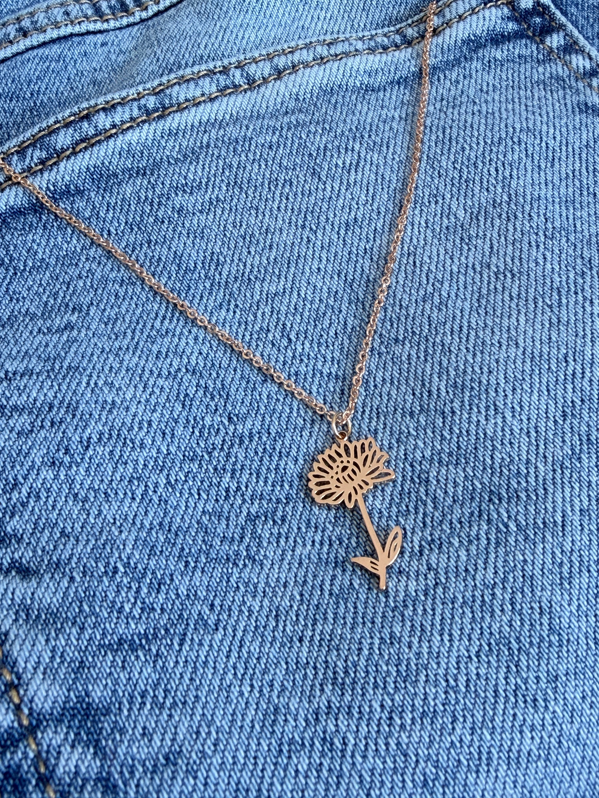 The Gold Daisy Pendant Necklace is one of those pieces that instantly makes an outfit feel put together without even trying. Featuring a delicate daisy charm on a fine gold-plated chain, this necklace is equal parts feminine and effortless.