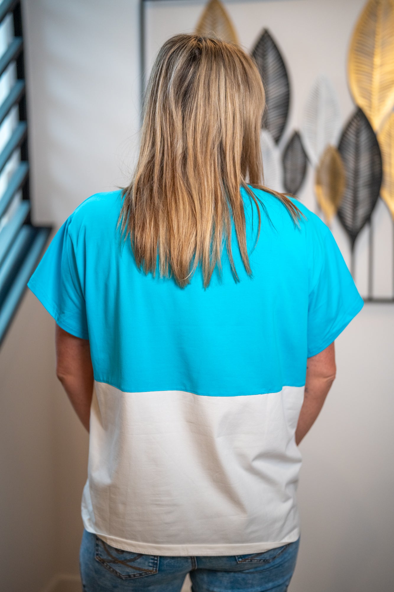 Make a bold, bubbly statement in this playful graphic tee from Queen of Sparkles. Featuring a vibrant turquoise top with a crisp white color-blocked bottom, this standout t-shirt shines with a large sequin “Seltzer Queen” patch front and center.